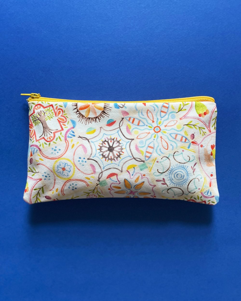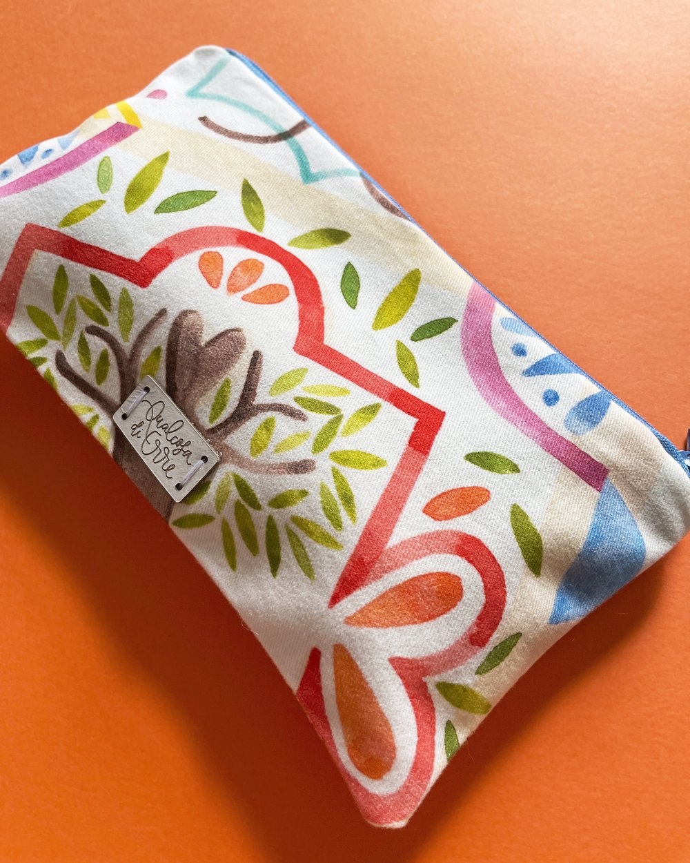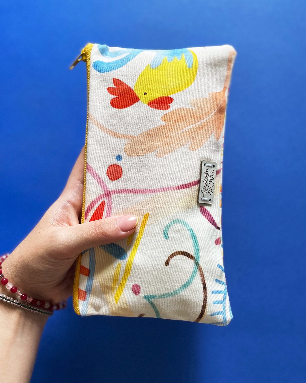 Astuccio in cotone cucito a mano e foderato con illustrazione realizzata ad acquerello.