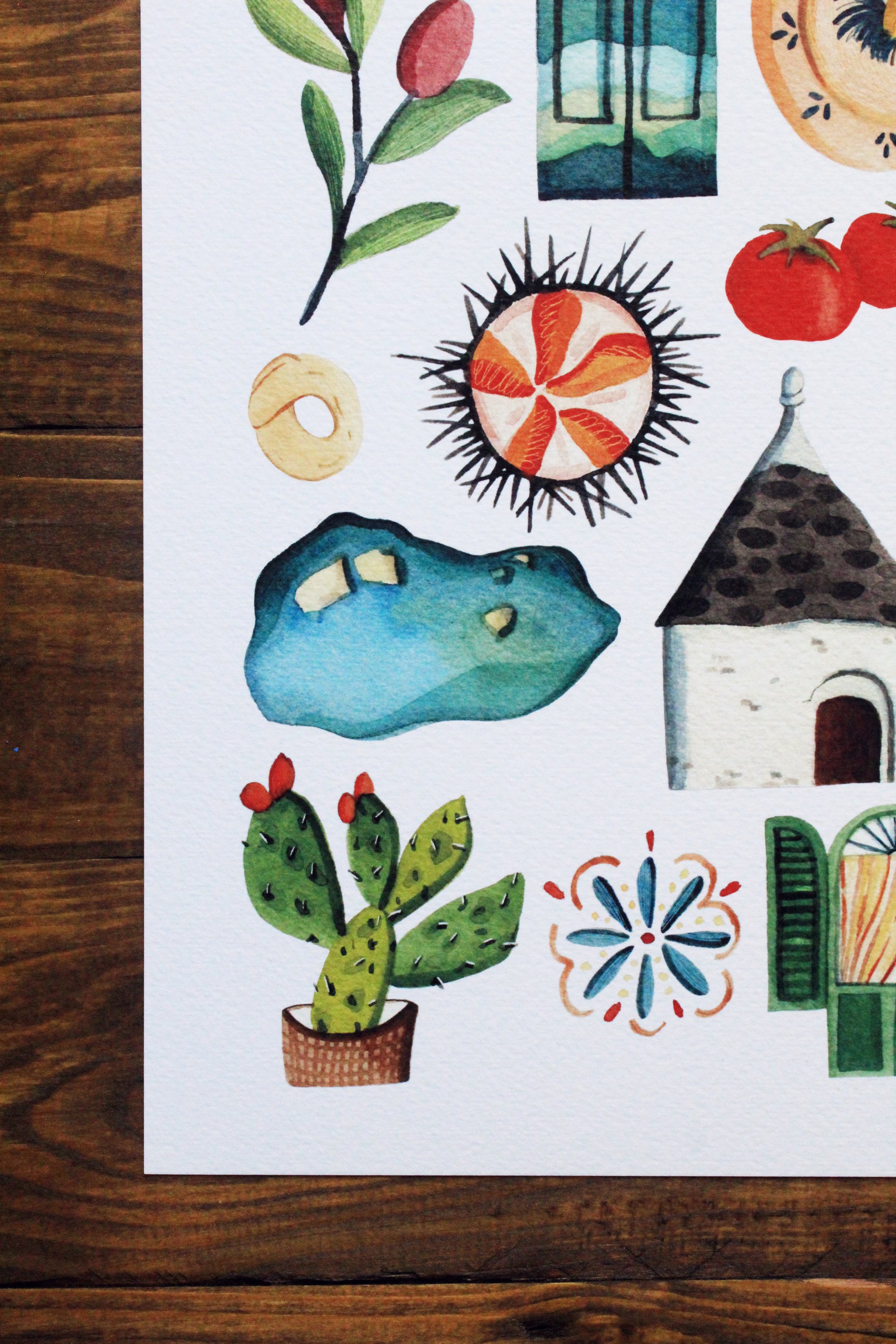 Stampa in formato A4 o A3 su carta acquerello 300gr, perfetta per decorare la tua casa e per ricordarti gli odori, i colori e l'atmosfera pugliese. Scegli il formato che preferisci!